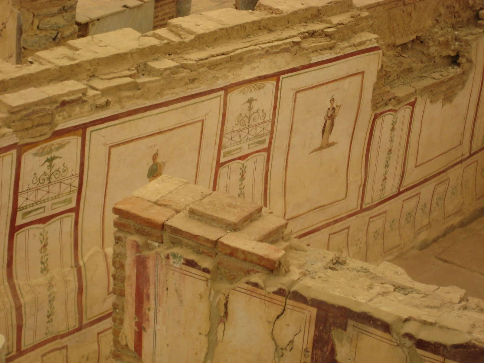 There was a separate entrance for the terrace houses, which turned out to be one of the highlights of the trip. What you visit are six mansion-houses that share common walls, forming what the romans called an island. Inside they have been able to reconstruct the mosaics and wall-coverings on many of the houses. It gave me a sense of roman life like I’ve never had before, and helped me see the luxury they were living in. (I knew about indoor plumbing and heated floors. That was cool to see again, but it was decoration that was new to me.) The floors had unique mosaics that look very much like rugs. Some houses had beautiful and very different marbles on the walls, like wall-paper. Others had incredible wall paintings. The pictures don’t do it justice (the whole thing is covered in a 25 million dollar tent, which diffused the light).